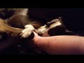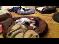 When Triton first arrived at the rescue he was extremely shy and scared, he would stay curled up in the corner and sit and watch. He would freeze if I went up to go and stroke him, but was never aggressive. After a few days, he started to relax a lot more and started to enjoy his petting sessions. After about a week he started wanting to explore and whilst still not at the point where he was ready to wrestle and play with the other dogs his curiosity was taking over his shyness. Over the following few weeks he has truly decompressed and come out of his shell. He will jump up on the coach for cuddles, he will go to one of the several toy baskets and choose a toy to play with, he will play with the other dogs and now more often than not instigate play. He will follow me to the kitchen when it is "treat time" and hold his own amongst the hustle and bustle with the other dogs.