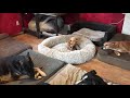 Due to the fact there is only one person running the rescue, trying to socialize the dogs has been an impossible task. They have come a long way in that they will come for treats, they are a relaxed and happy playing, eating, sleeping and hanging out with the other dogs - they are great around the house and come and go as they please through the dog door - however, they are still very shy/fearful of being handled - they want it but since there has not been able to be any one on one work they have not transitioned as we wanted to them being happy, comfortable lap pets.