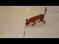 KNOPA is very affectionate and does follow me around everywhere, this is how she is, but also because the huge transition she has just been through will add to it. She is very agile and can jump and bounce all over, she went up and down stairs at the airport with no hesitation at all. I do have pee pads down that she has used, but I often take her out on the back porch and she will do her business there. I do not think she knows to let me know she wants to go outside, so accidents should be expected until she has settled and learnt her new routing and life-style.