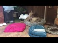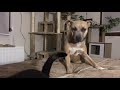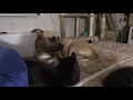Sandy was picked up from the shelter and was pregnant when she was spayed, so this would clearly have added to her already traumatic experience. She is a very shy somewhat fearful girl although she is extremely gentle. She has been through so much and never shown any sign of aggression, which speaks volumes for her character. Sandy was put in a kennel when she first arrived at the rescue, but when we saw how fearful she was, we moved her over to the back-pack and then up into the house so we can spend a little more time with her. During the evenings I bring her into my bedroom so that she can get used to me and gain trust - she is a little over-whelmed with everything, but when I am outside she will stick close by, showing that she feels safe with me. I can pick her up and she is fine, of course not comfortable, but again no aggression. In the bedroom she is fine with the cats, curious at first but with her being so unsure of everything around isn't likely to bother with the cats anyway.