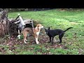 Porter is a fun, happy, goofy boy. He loves to run and charge around, although at times he can be like a bison in a stampede when he gets to run in the fenced in area and loves to wrestle with the other dogs. He can initially play a little rough, he is a strong boy, so it is important he and other dogs get to know each other first before allowed to have high energy play. He loves every human he has met and totally won the heart of the transport lady and became her favourite dog on the ride. He is loving, affectionate, loves to lean into you as you pet him, he is responsive and although he does jump up a little, which is very common for rescue/shelter dogs, that is something that can be easily trained.