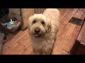 He is a very gentle soul and you cannot look at him without melting your heart he has a beautiful demeanor along with the curiosity of a cat, loving to explore and smell all the different things. He has got a lot more comfortable with the other dogs and does like to play with Stanley my 12 pound fearless wire-haired terrier. His favourite thing is to steal the cat toys, he loves pulling fluffing things apart and is fascinated with squeaks.