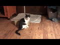 STORMY has only been at the rescue now for 7 months (January 2022) and has settled in well. He is great with other cats and is often snuggling up to his mum, TAFFY, of one of the other cats. He enjoys their company and does enjoy playing and chasing around. When Stormy arrived he was very fearful and would hide often, and although his siblings soon came round, he preferred to watch from a distance. Being a dog rescue, I do not get much time to try and socialize with him and so he is still not used to being handled. He does however, take the lead from the other cats and will come and lie on the bed very close to me. If I put my hand out he will sniff and has on several times licked my fingers. He has on a few occasions let me stroke him. I do believe with some time and patience, he will learn and gain trust and be the cat that likes to snuggle.